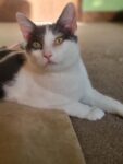 Jade is a quiet and sweet kitty with a very gentle soul. She loves to be around people and watch what you are doing. She likes to have quiet conversations with her people. Jade would probably prefer a quiet house. She loves her sister and goes to her for comfort, so we are asking Jade and Ellie be adopted together.